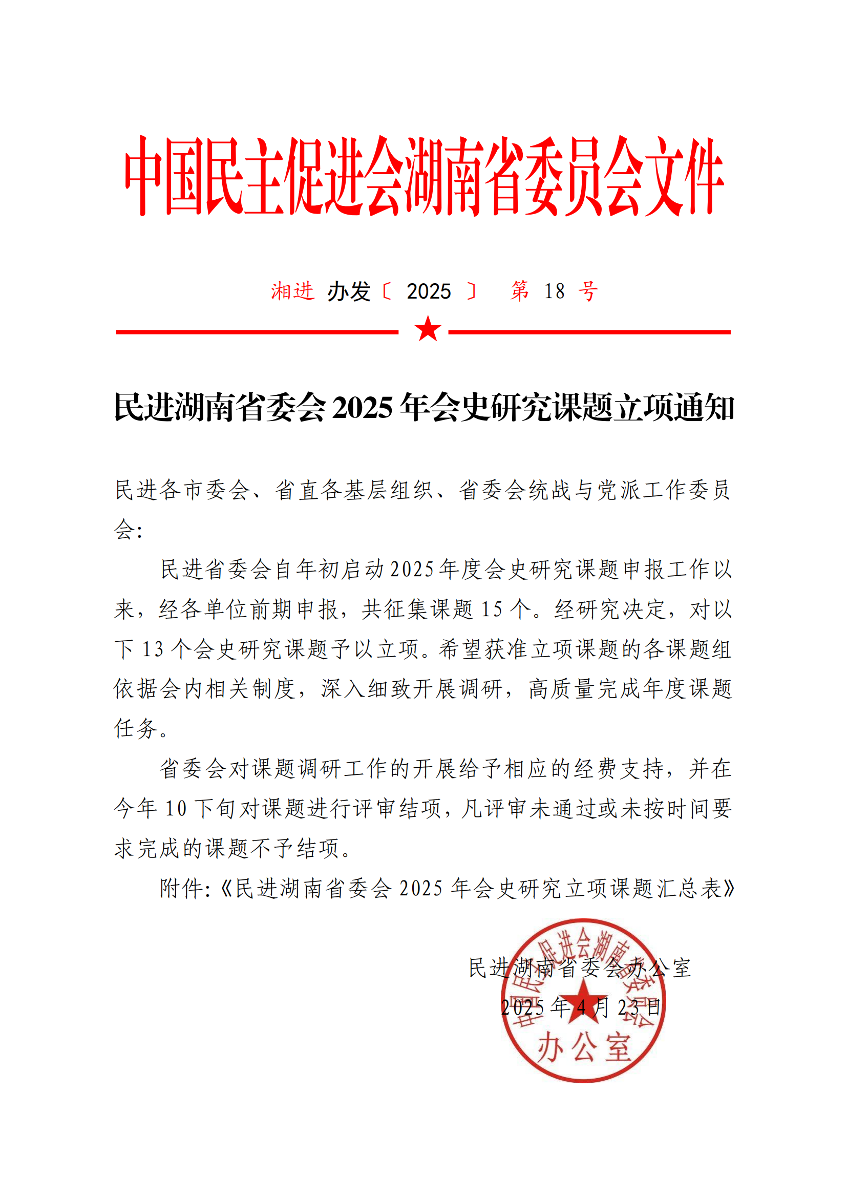 民进湖南省委会2025年理论课题立项通知(湘进办发18号)(1)(2)